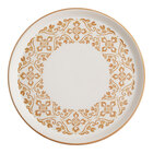 The Santa Anita Valentina stoneware collection by Arc Cardinal serves as a striking backdrop for virtually every menu selection thanks to its perfect balance of botanical aesthetics and artisanal charm. Inspired by Mexican heritage and style, the Valentina line features a symmetrical, stylized floral ring near the rim, encircled by decorative vines and curling foliage. This plate showcases the intricate pattern in a sandy beige color, enhancing its natural elegance and traditional feel. Perfect for serving salads, sandwiches, and desserts, this Santa Anita Valentina plate from Arc Cardinal guarantees long-lasting and reliable performance in your gourmet restaurant.
