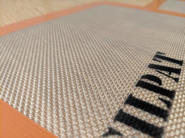 This quarter size silicone mat is amazing. Prevents the need to scrape pans, and it's very thick. It seems like it will stand up to a lot of repetitive use and the dishwasher.