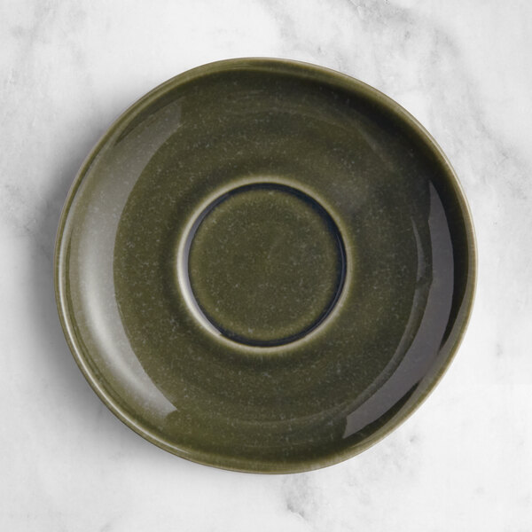 Enhance your dining experience with the Acopa Highlands 5 1/2" round juniper green china saucer.
