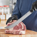 This versatile cimeter knife is perfect for the general cutting, trimming, and slicing of large cuts of meat in restaurant kitchens and butcher shops. The granton edge style of the blade makes slicing and carving more fluid by creating pockets of air between the knife and meat and allowing it to fall away after each cut. Adding this versatile knife will ensure your staff is equipped with an essential tool for a variety of essential meat preparation tasks. Crafted with German Steel: The Standard of Excellence.