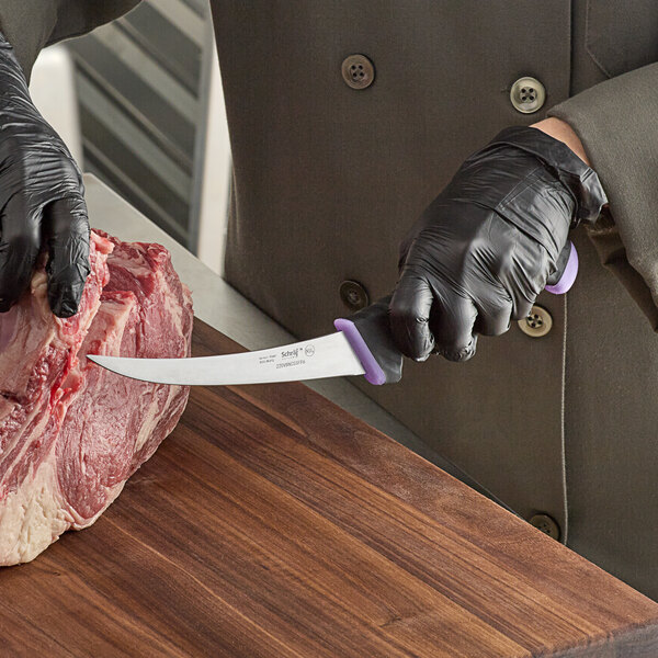 Part of a convenient HACCP colored cutlery line, this knife has a black / purple colored handle that allows it to stand out and makes it great for creating a color-coded system in your kitchen to prevent cross-contamination.