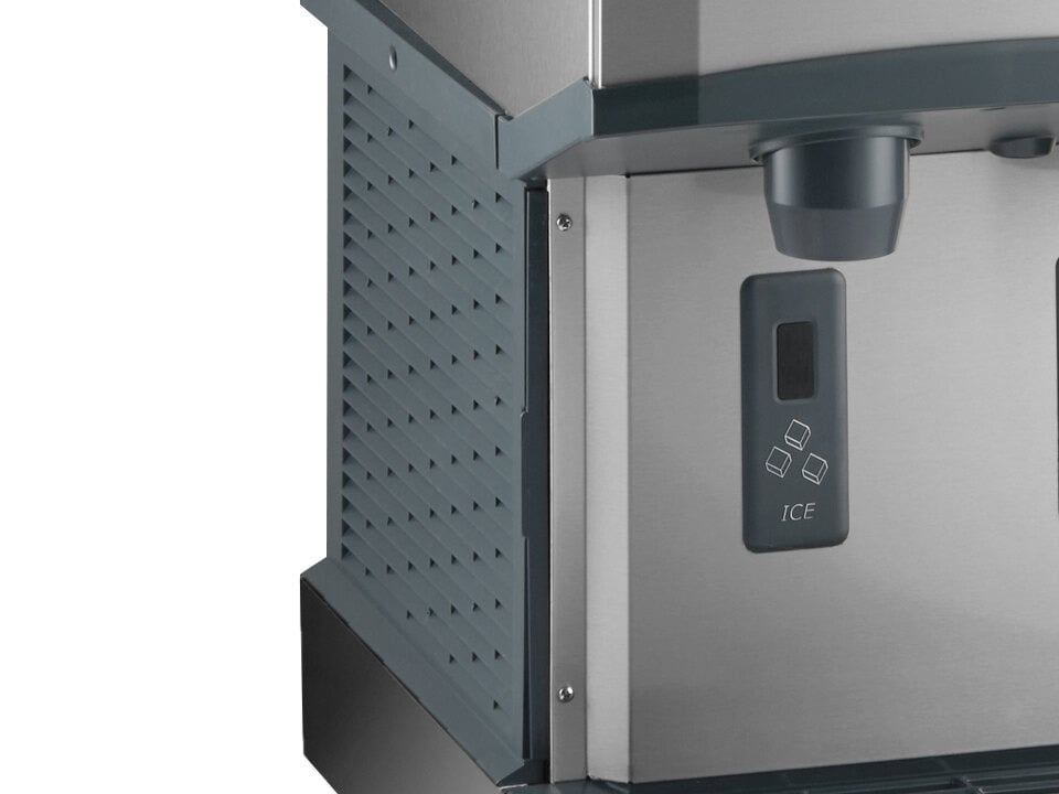 Great machine. Compact and quiet. There is an easy on/off switch hidden in the front that allows us to turn off the sensors when cleaning the machine. I only wish we had an option to switch between shredded ice and slightly larger cubes.