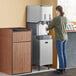 This unit has push buttons for quick and easy dispensing. Plus, it has Agion and other antimicrobial compounds molded into its key components to inhibit the growth of harmful pathogens, ensuring your ice is suitable for consumption. It has a durable stainless steel evaporator and exterior panels, and it features a large sink opening and spacious dispensing area with an 11" clearance. It includes intuitive diagnostic LED lights to reduce service times and a USB drive for quick software updates. It includes a unit-specific QR code that instantly connects users to warranty and service information. Its sealed bearings, fully removable bin, air filter, sink, grill, and spouts, and front-accessible air filter provide easy upkeep.