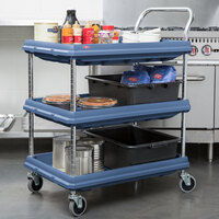 Whether you run a restaurant or you're catering an event, mobile food carts are an essential part of your kitchen equipment. Move heavy ingredients from one station to another in your bakery, or transport beverage dispensers, tableware, or meal items to buffet tables at your indoor or outdoor venue. Since these carts are mounted on casters, they're easy for anyone to move regardless of the weight they carry.