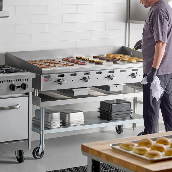Cooking Performance Group 36GTSSNL 36" Thermostatic Griddle with Regency Equipment Stand and Stainless Steel Adjustable Work Surface - 90,000 BTUItem number35136gtssnl