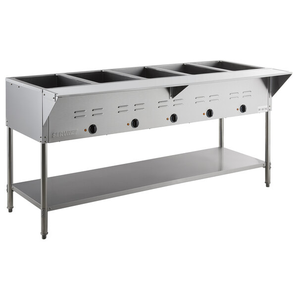 Thank you for your feedback! We are sorry your ServIt EST-5WE Five Pan Open Well Electric Steam Table with Undershelf - 208/240V, 3750W did not work for your needs. Action has been taken to remedy this. Please reach out to our Customer Solutions team if you have any questions!