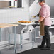 The body of this unit is constructed of durable 22-gauge type 430 stainless steel and heavy-duty hardware. The top and wells are made of 20-gauge type 304 stainless steel, while the cutting board support shelves are made of 16-gauge type 430 stainless steel.