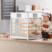This pizza warmer draws in customers with bright LED lighting and panels on three sides of the unit. These panels are customizable to showcase your specific branding. It also has four glass sides so customers can see your delicious pies from any angle, and the single glass door allows for simple loading or unloading.