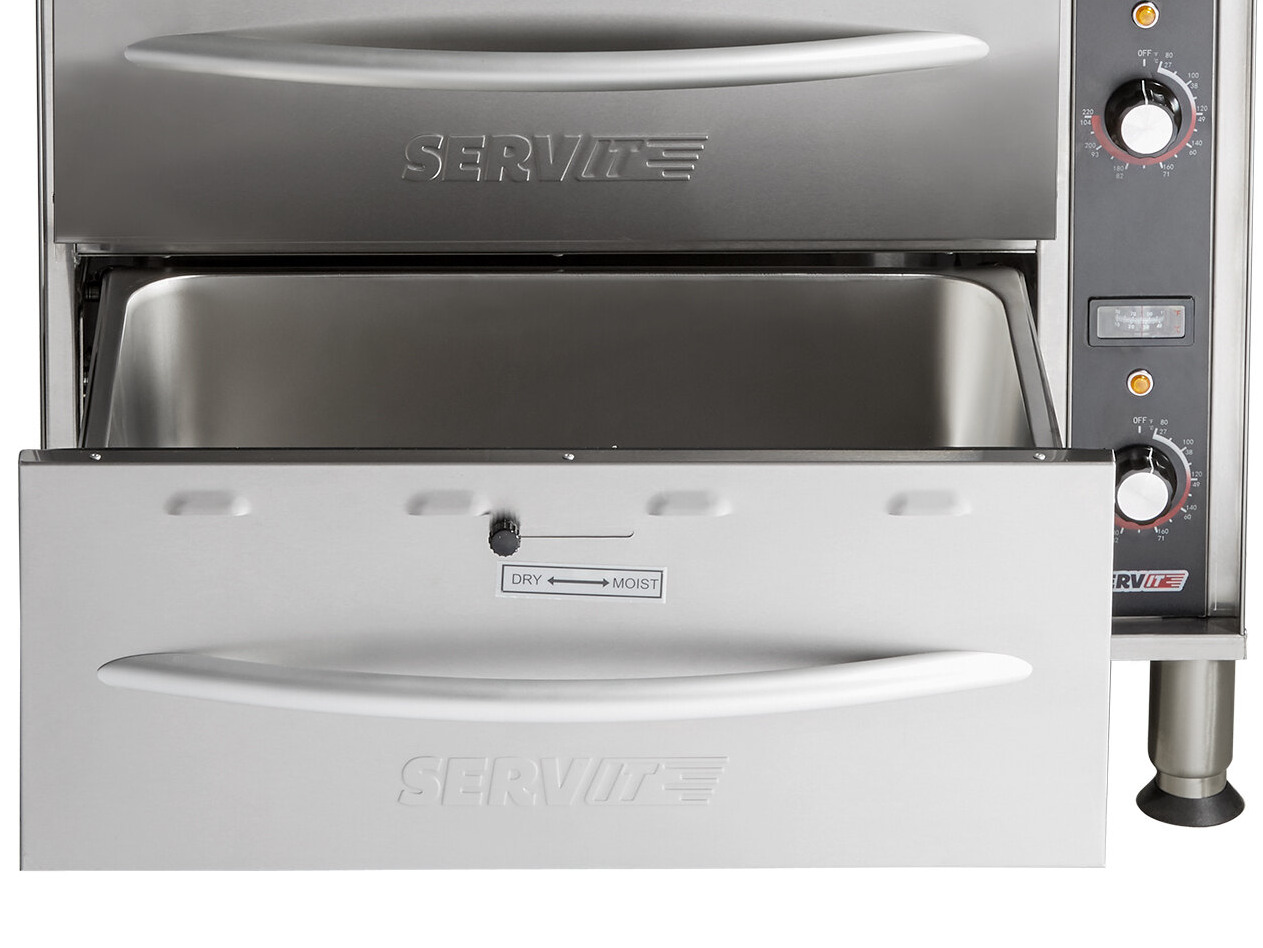 Each drawer has a separate thermostatic temperature control, indicator lamp, and a vent control knob. Independent drawer controls allow you to operate three drawers at different temperatures and provides the flexibility you need to successfully manage multiple orders simultaneously with ease.