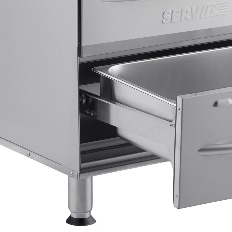The durable, full stainless-steel construction makes sure that this drawer warmer will stand up to busy environments and frequent use. The unit's freestanding design allows it to be easily installed almost anywhere in your kitchen. Plus, its 11-gauge drawers slide on 14-gauge slide brackets to help ensure long-lasting durability.