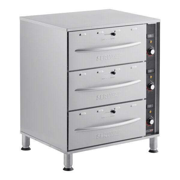 Keep your most sides and entrees hot and ready to serve with the ServIt WDSFS-3 triple freestanding drawer warmer!
