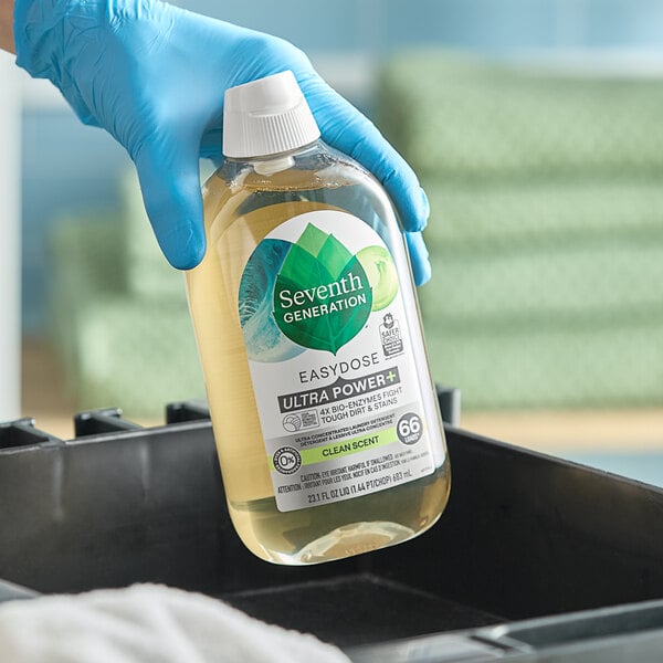 Enhance your laundry experience with Seventh Generation EasyDose Power+ 23.1 oz. clean scent ultra-concentrated laundry detergent! This unique formula is powered by 6 enzymes and surfactants, making it the ideal solution for tackling tough stains and large laundry messes. With 99% biobased ingredients, this detergent is effective and safe for the environment. This detergent boasts 4 times the cleaning power of the Seventh Generation standard laundry detergent, helping to ensure a thorough clean. The clean scent leaves your clothes smelling fresh and revitalized after each wash.