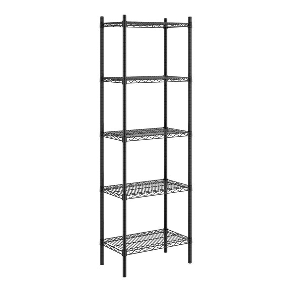 This black epoxy shelf kit includes (5) 14" x 24" wire shelves and (4) 72" posts, which allow you to create a convenient storage solution for your janitorial closet, warehouse, or walk-in cooler. Incredibly easy to install, this kit can be quickly assembled once it arrives so that you can begin using it immediately!
