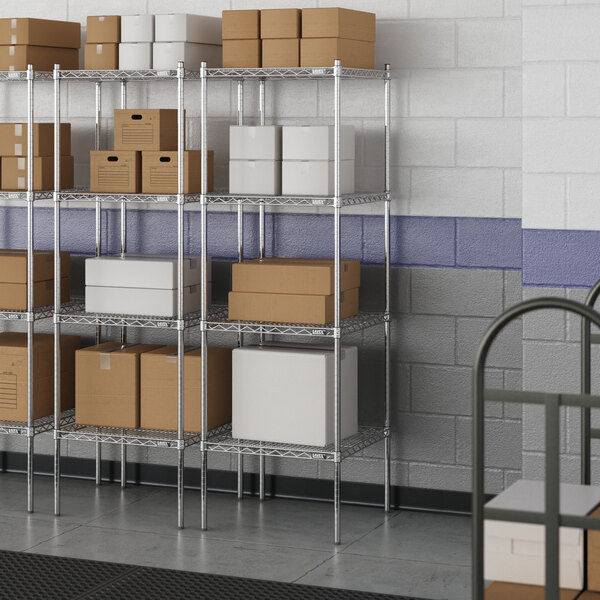 Designed for use in dry environments, this shelving unit is an excellent choice for organizing and maximizing storage space. Whether you're looking to streamline your warehouse operations or simply need additional storage in your industrial facility, this heavy-duty shelving kit is the perfect solution. Mix and match with Lavex Pro accessories (sold separately) to personalize your kit! Invest in the Lavex Pro chrome heavy-duty 4-shelf kit and experience the durability and functionality it brings to your workspace.