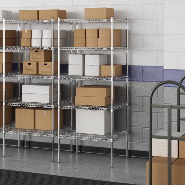 Designed for use in dry environments, this shelving unit is an excellent choice for organizing and maximizing storage space. Whether you're looking to streamline your warehouse operations or simply need additional storage in your industrial facility, this heavy-duty shelving kit is the perfect solution. Mix and match with Lavex Pro accessories (sold separately) to personalize your kit! Invest in the Lavex Pro chrome heavy-duty 5-shelf kit and experience the durability and functionality it brings to your workspace.