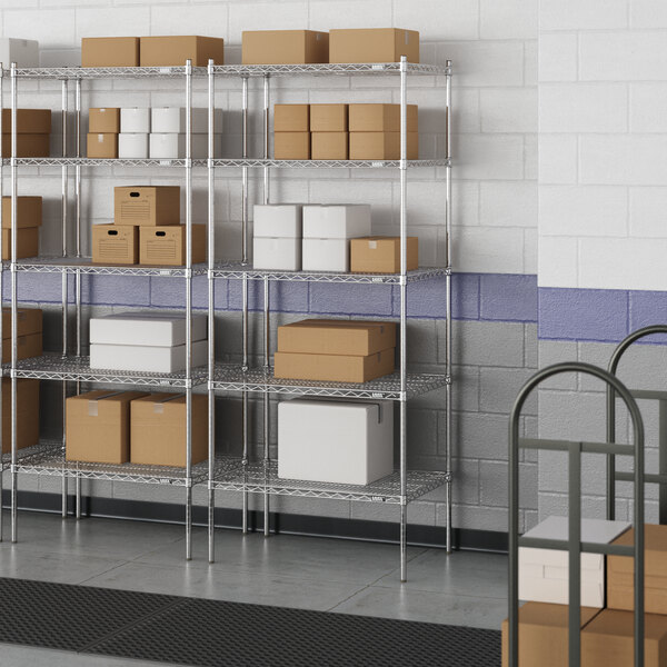 Designed for use in dry environments, this shelving unit is an excellent choice for organizing and maximizing storage space. Whether you're looking to streamline your warehouse operations or simply need additional storage in your industrial facility, this heavy-duty shelving kit is the perfect solution. Mix and match with Lavex Pro accessories (sold separately) to personalize your kit! Invest in the Lavex Pro chrome heavy-duty 5-shelf kit and experience the durability and functionality it brings to your workspace.