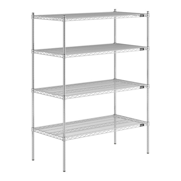 Designed for use in dry environments, this shelving unit is an excellent choice for organizing and maximizing storage space. Whether you're looking to streamline your warehouse operations or simply need additional storage in your industrial facility, this heavy-duty shelving kit is the perfect solution. Mix and match with Lavex Pro accessories (sold separately) to personalize your kit! Invest in the Lavex Pro chrome heavy-duty 4-shelf kit and experience the durability and functionality it brings to your workspace.
