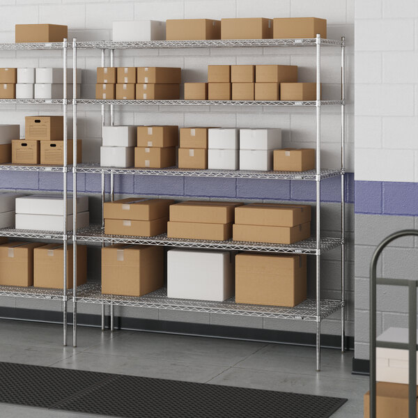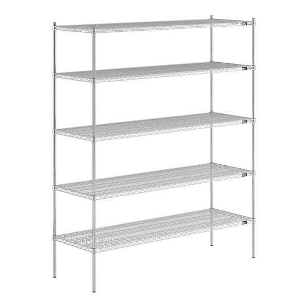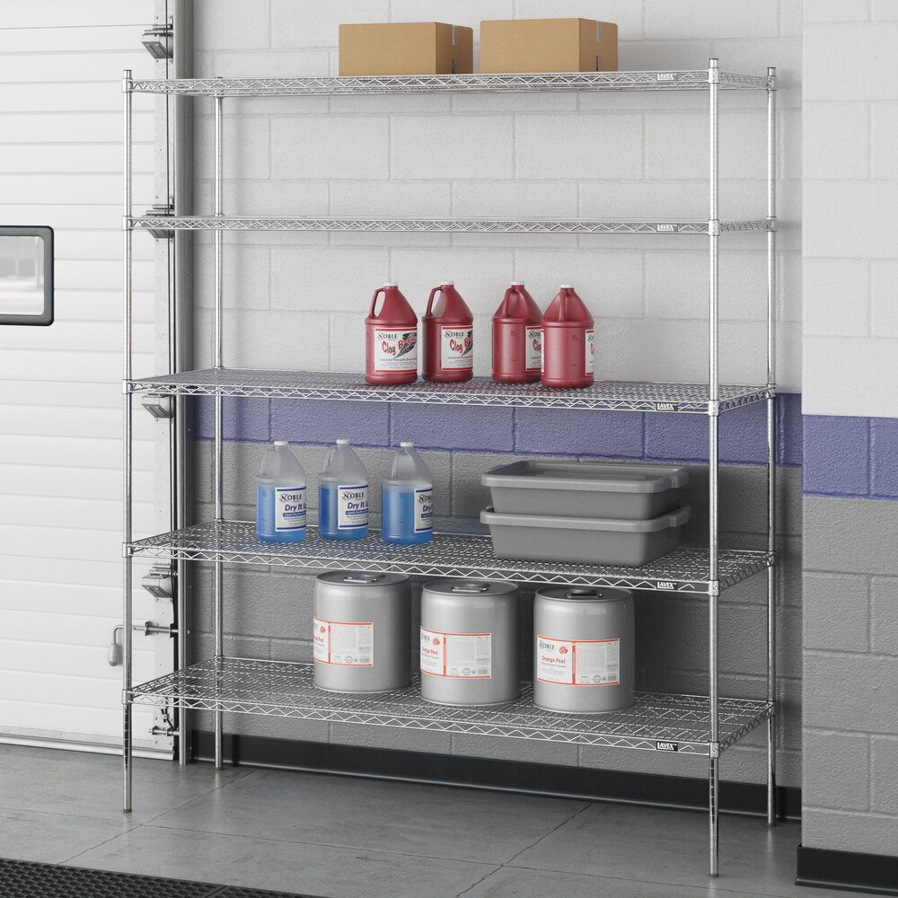 Designed for use in dry environments, this shelving unit is an excellent choice for organizing and maximizing storage space. Whether you're looking to streamline your warehouse operations or simply need additional storage in your industrial facility, this heavy-duty shelving kit is the perfect solution. Mix and match with Lavex Pro accessories (sold separately) to personalize your kit! Invest in the Lavex Pro chrome heavy-duty 5-shelf kit and experience the durability and functionality it brings to your workspace.