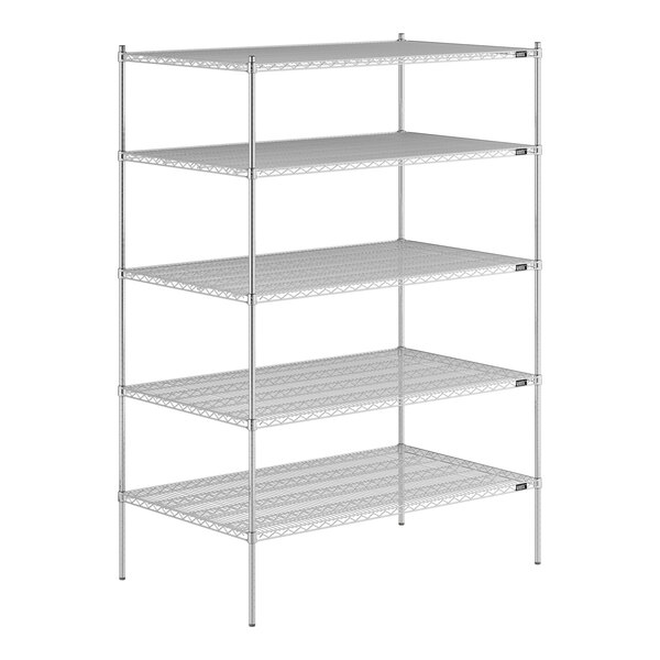 Designed for use in dry environments, this shelving unit is an excellent choice for organizing and maximizing storage space. Whether you're looking to streamline your warehouse operations or simply need additional storage in your industrial facility, this heavy-duty shelving kit is the perfect solution. Mix and match with Lavex Pro accessories (sold separately) to personalize your kit! Invest in the Lavex Pro chrome heavy-duty 5-shelf kit and experience the durability and functionality it brings to your workspace.