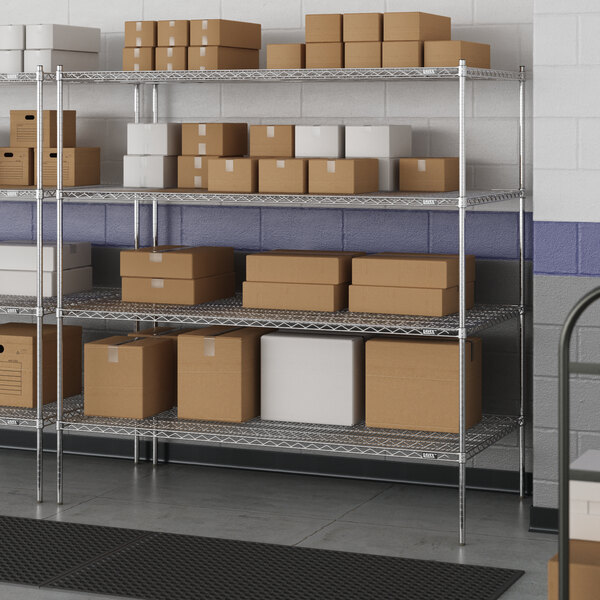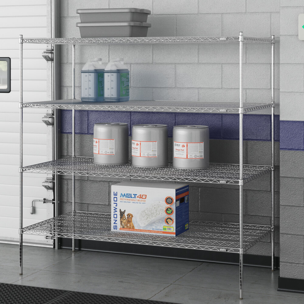 Designed for use in dry environments, this shelving unit is an excellent choice for organizing and maximizing storage space. Whether you're looking to streamline your warehouse operations or simply need additional storage in your industrial facility, this heavy-duty shelving kit is the perfect solution. Mix and match with Lavex Pro accessories (sold separately) to personalize your kit! Invest in the Lavex Pro chrome heavy-duty 4-shelf kit and experience the durability and functionality it brings to your workspace.
