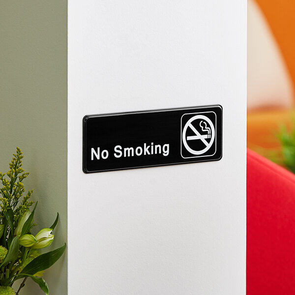 Show your customers and employees that smoking is not permitted in the area with this Lavex 9" x 3" no smoking sign!