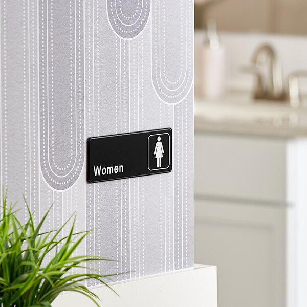The stark black and white contrast of the sign guarantees optimal visibility, making it easy to spot from a distance. For those who may have trouble reading, a female symbol is posted to the side. Ideal for restaurants, cafes, and other businesses, this versatile sign helps maintain a professional and organized atmosphere, elevating the overall experience for your guests.