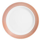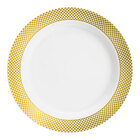 By ordering this Visions Lattice sample, you're able to touch and see it in person to ensure it meets all the unique requirements of your foodservice space before committing to the purchase of a full case. Serve your signature appetizers with classical elegance and none of the cleanup on this Visions Lattice 7" white plate with silver lattice design! Featuring a contemporary silver lattice pattern along the wide outer rim, this plate's striking contrast between rim and stark white body is sure to draw attention while adding an upscale look to your wedding receptions, banquets, or other catered events. This plate is designed to mimic the look of real china, while providing the convenience of disposability that your events require. Plus, with a versatile 7" diameter, it's ideal for serving not only hors d'oeuvres, but sides and desserts, too!