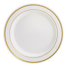 Featuring a contemporary silver band pattern along the wide outer rim, this plate's striking contrast between rim and stark white body is sure to draw attention while adding an upscale look to your wedding receptions, banquets, or other catered events.