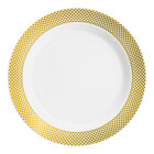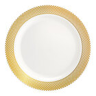 By ordering this Visions Lattice sample, you're able to touch and see it in person to ensure it meets all the unique requirements of your foodservice space before committing to the purchase of a full case. Serve your signature salads, sides, and main entrees with classical elegance and none of the cleanup on this Visions Lattice 9" white plate with silver lattice design! Featuring a contemporary silver lattice pattern along the wide outer rim, this plate's striking contrast between rim and stark white body is sure to draw attention while adding an upscale look to your wedding receptions, banquets, or other catered events. This plate is designed to mimic the look of real china, while providing the convenience of disposability that your events require. Plus, with a versatile 9" diameter, it's ideal for serving not only meat and potatoes, but salads, pasta, and sandwiches, too!