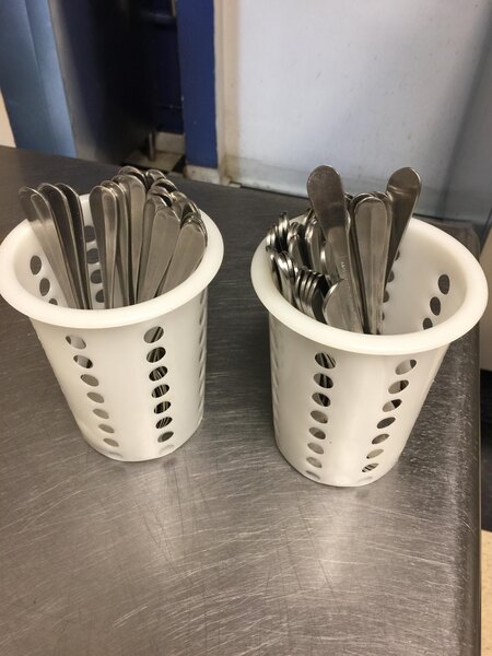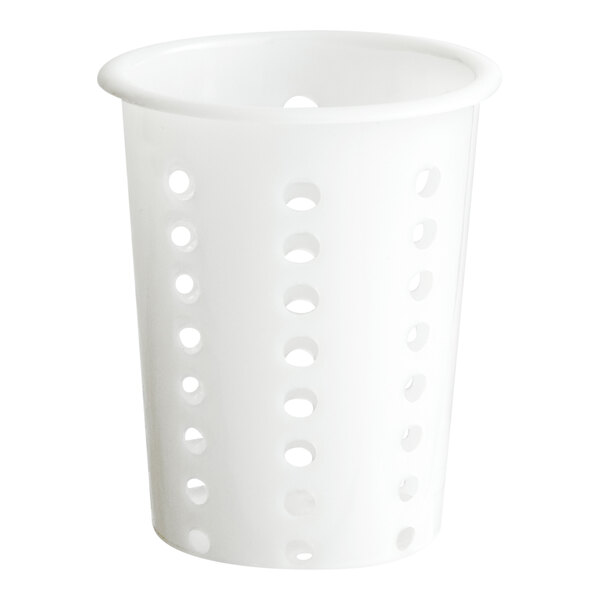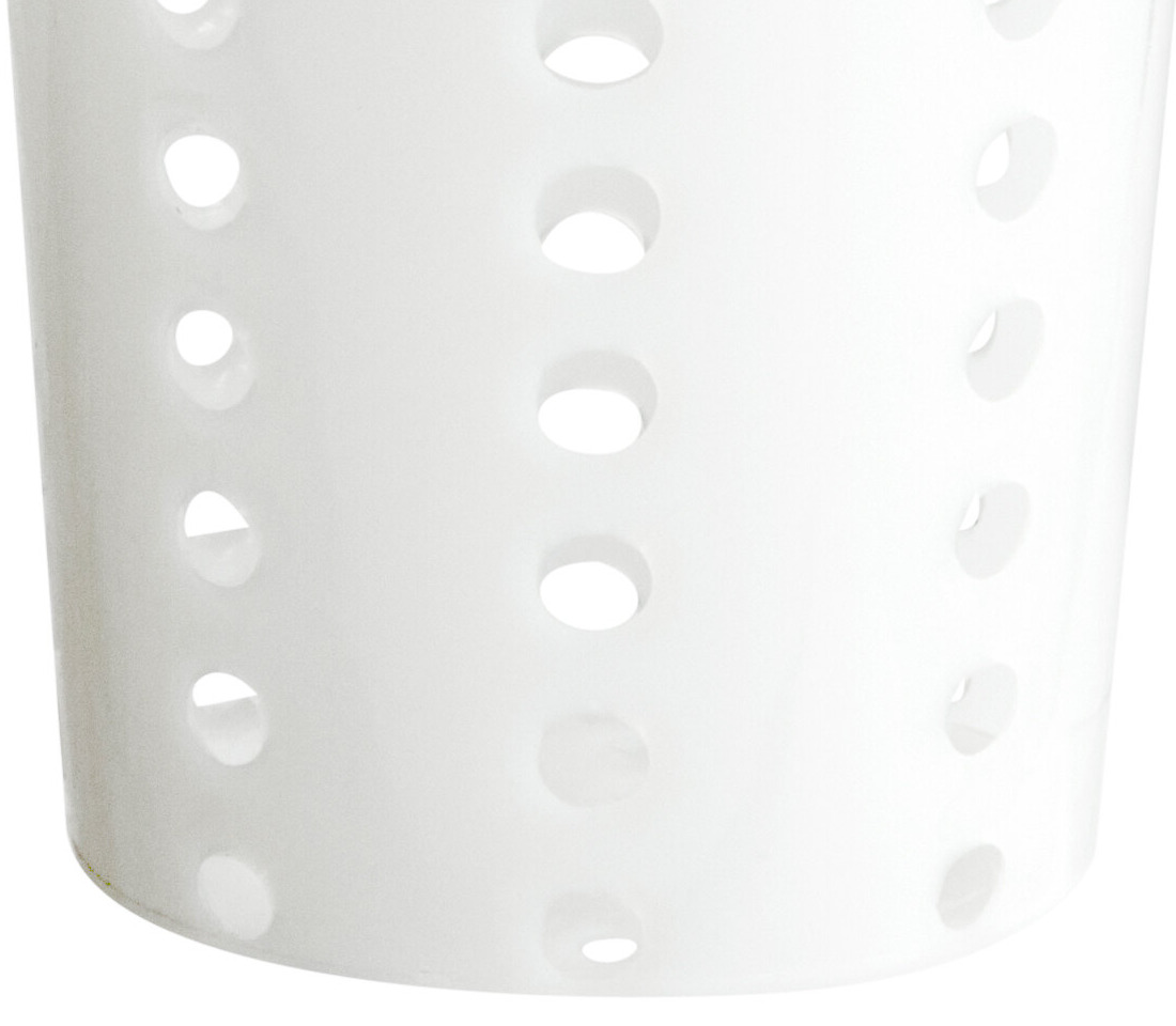 White Perforated Plastic Flatware Cylinder has multiple uses. I use it to hold silverware while washing and is a cheaper alternative to strain veggies amd water from pasta