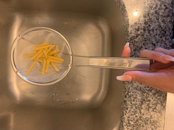 I use this at home whenever I’m frying. It’s perfect to help me scoop donuts out of the pot. Also works for noodles or anything else that needs to be drained.