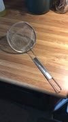 This is a very good strainer it is sturdy and we use it for many things it is long enough to scoop the deep fryer or to starting pickle jusice for pickle shots