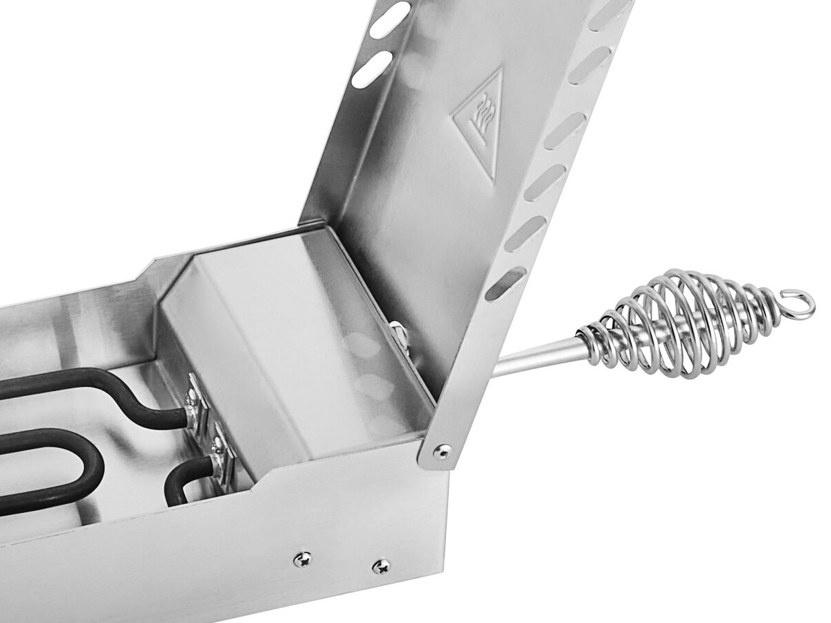 This smoker box comes with a 6 ft. high-temperature cord and features 100W of power. Prepare fish, vegetables, and meats with a delicious smokey flavor using this smoker box accessory.