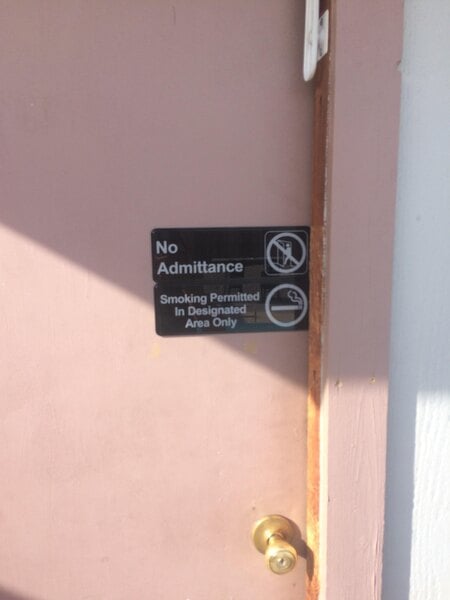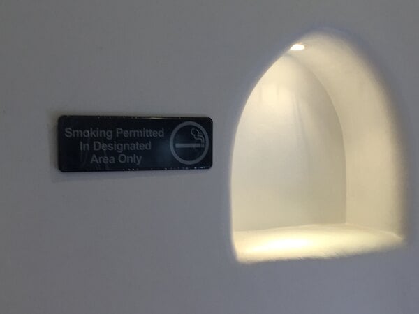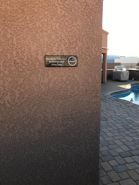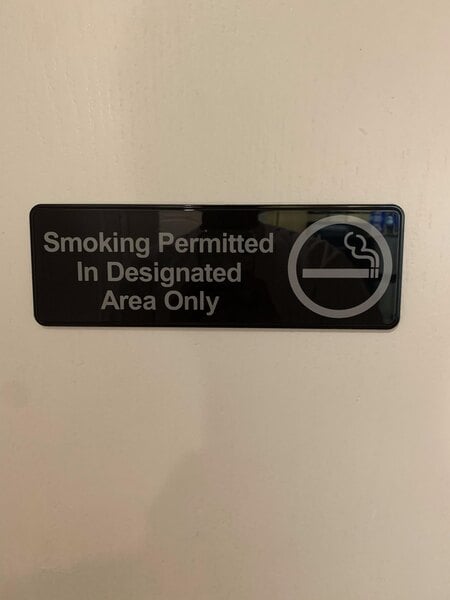 laws regarding smoking in california are very confusing it is important to let customers know where they are aloud to smoke, this sign is made out very good quality plastic and it has double sided tape on the back