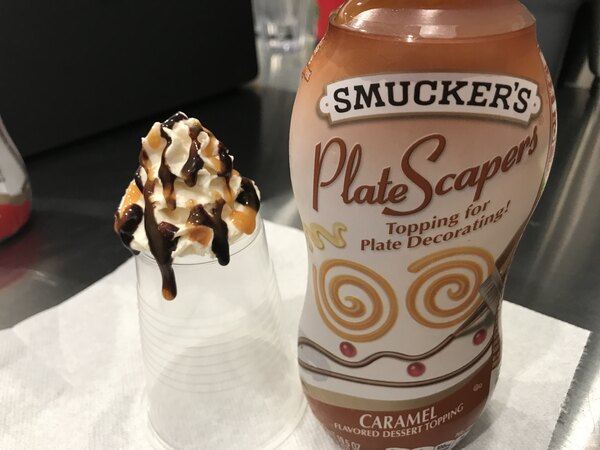 Decorate your desserts and enhance your plating presentations with Smucker's Caramel PlateScapers. Smucker's line of Platescapers dessert toppings transforms any plate into a canvas, which can then become a work of art! Use this topping to draw lines, squiggles, shapes, and more. PlateScapers topping is thicker than a sauce, so it will hold your designs and not pool out. With the convenient squeeze bottle packaging and unique decorating tip, the product flows easily for making hassle-free plate designs.