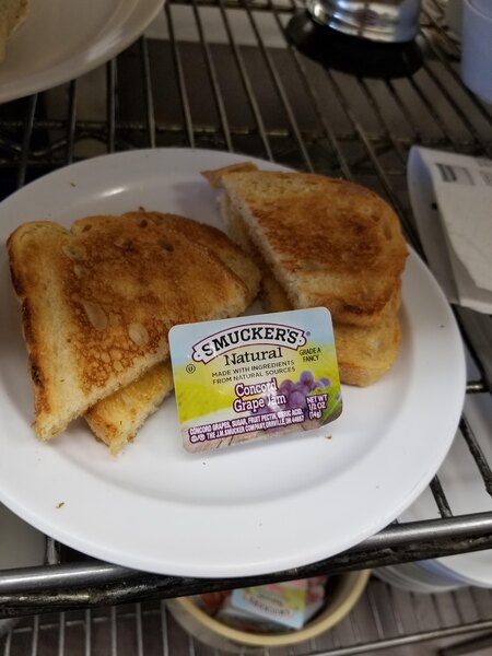 These were perfect for people to grab at breakfast and walk somewhere else. They didn't have to stand in a line getting jelly from a big jar, but could quickly grab some and walk away. Plus they have many flavors to order from