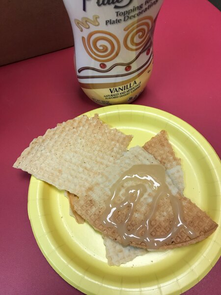 This vanilla flavored product from platescapers by Smuckers is not only nice tasting, but it also allows us to show off our creative side by decorating on plates and over desserts. A fun product to use.