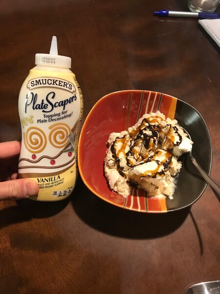 Smucker's Vanilla Platescapers 19.5 oz. Bottle Again a superior ice cream topper ppl like it over Hershey and has that perfect flavor to sweetness ratio