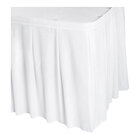 Upgrade your venue's tables with this Snap Drape 5412CE29C2-010 Wyndham 13' x 29" white continuous pleat table skirt with Velcro® clips! Just as each dish is prepared with finesse and refinement, the table on which your food is presented should be as well. This charming, white table skirt is perfect for your establishment's 48" round table, or it can be used as a three-sided conference style skirt for rectangular tables up to 8' x 30".