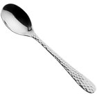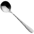 Mesmerize guests with a piece that is just as memorable as the cuisine with the Lima 7" 18/10 stainless steel extra heavy weight round bowl soup spoon. This spoon boasts a slightly wider design than traditional dinnerware, making it extremely comfortable to use. The hammered design combines elegance with ruggedness, creating a stunning appearance and providing a strong presence to the table. This spoon's artistic look is bound to add sophisticated flair to your tabletop!