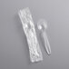 This Choice clear heavy weight wrapped polystyrene plastic soup spoon is perfect for your take-out restaurant, cookout, party, gathering, or other catering event.