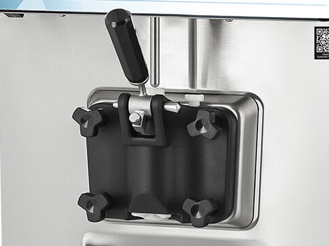 An easy-to-use digital user interface and control system controls the refrigerated hopper's sleep and standby modes to maintain temperatures below 40 degrees Fahrenheit. This machine even features a low mix indicator light and alarm, so you can tell at a glance or be notified when it's time to add more mix. The auto-closing dispensing valve keeps product from spilling and helps to prevent messes, while the defrost mode makes cleaning the hopper a breeze!
