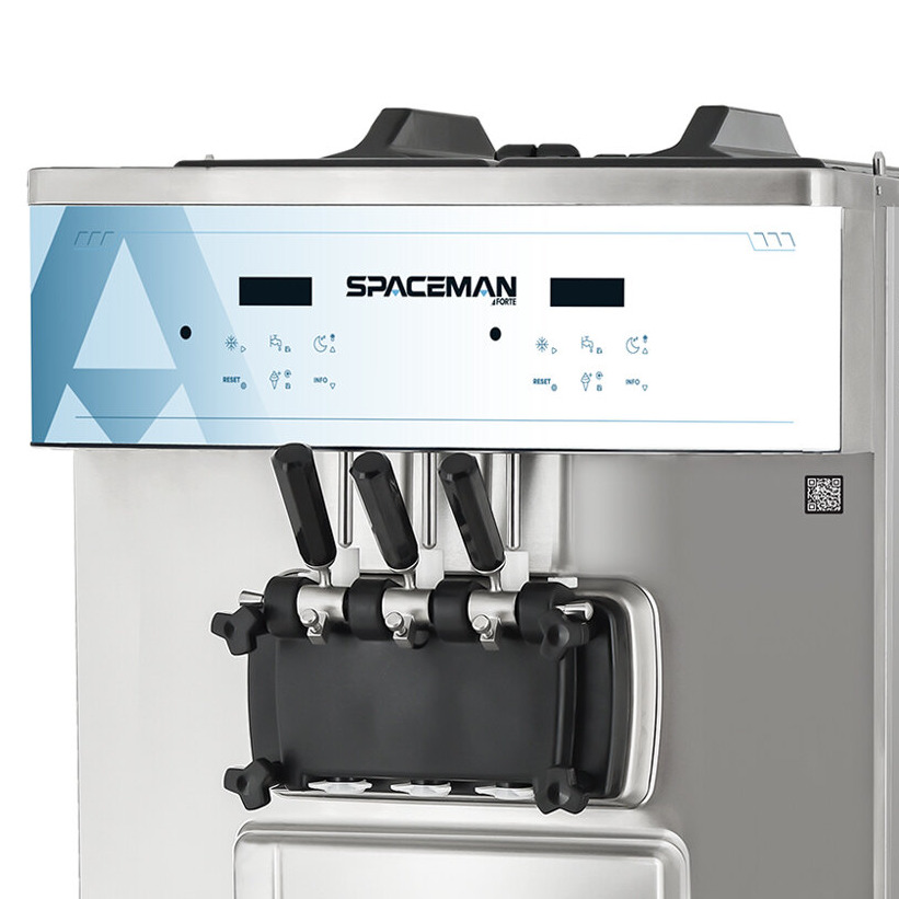 Expand your menu to offer soft serve style ice creams, custards, yogurt, gelato, or sorbet with this Spaceman pressurized dual flavor high-output twin twist free-standing ice cream machine!