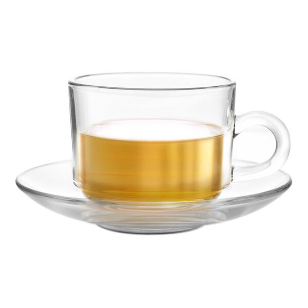 If you are looking for a superior saucer, add this Kenya 5 3/8" tea cup saucer to your shelves. Its contemporary, stackable design is great for busy tea houses, coffee shops, and restaurants; though, it can adapt to almost any setting. It exhibits beauty, convenience, and resilience. Its durable glass construction can withstand heavy-handed use. This tea cup saucer will last you a long time, pleasing countless customers along the way!