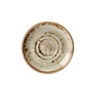 Perfect for serving coffee, tea, or other hot beverages, this saucer is crafted from durable alumina vitrified china, ensuring long-lasting performance in high-volume settings. Its sturdy construction means it can withstand frequent use while maintaining its beautifully crafted appearance. Whether used in casual bistros, upscale cafes, or contemporary restaurants, this saucer brings a warm, artisanal touch to any dining experience.