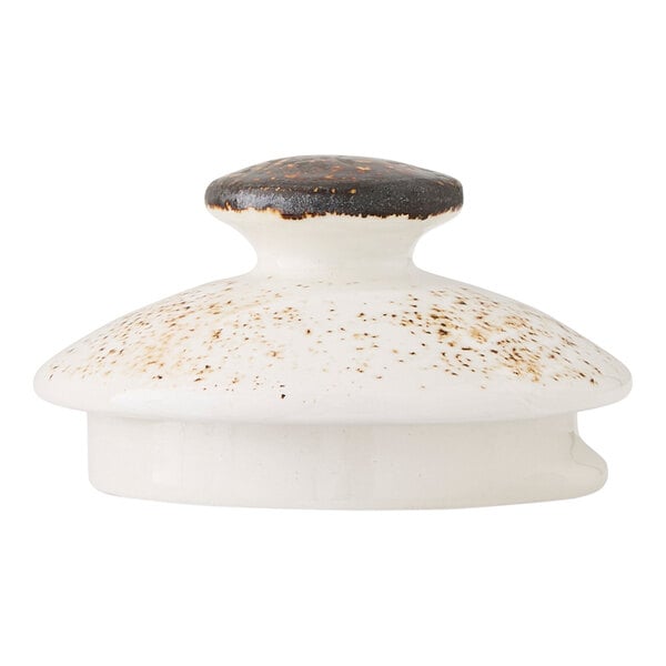 This lid is a direct replacement for the one that came with your Steelite Performance Craft 15 oz. white club teapot. Featuring a rustic design inspired by generations of handcrafted pottery, this lid combines traditional charm with contemporary appeal. Its unique speckled pattern gives each piece a one-of-a-kind look, making it a distinctive choice for any table setting. Crafted from durable alumina vitrified china, this lid provides long-lasting performance, making it ideal for frequent use in busy environments.