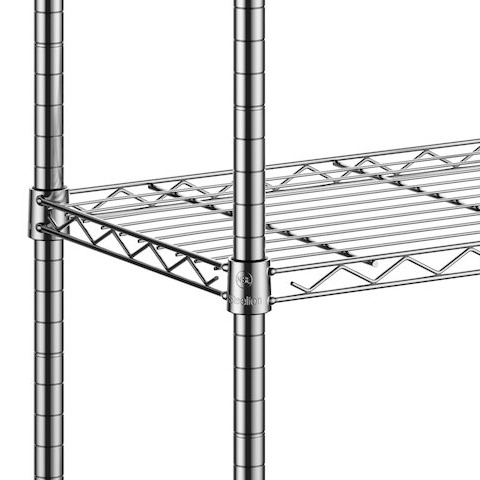 This shelf kit features a chrome wire construction that’s designed to be used in dry environments. Chrome provides excellent durability and is easy to clean and keep sanitary. Set this unit up in your stock room, food pantry, warehouse, garage, or retail area to keep your products organized.