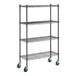 Keep your storage area organized with this commercial-grade Steelton shelf kit! This shelf kit includes (4) 14" x 36" wire shelves, (4) 54" posts, and (16) pairs of split sleeves to create a convenient storage solution for your janitorial closet, warehouse, or walk-in cooler. Incredibly easy to install, this kit can be quickly assembled for immediate use! Its black epoxy coating is suitable for both dry and moist environments, making it a commercial-grade, multipurpose investment that's sure to accommodate your ever-evolving needs. The adjustable shelves accommodate items of varying heights, such as ingredient bins, boxes, and cleaning supplies.