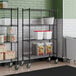 Each shelf features a wire construction to provide proper airflow around your stored supplies, products, or ingredients. The shelves each accommodate up to 300 lb. of weight when stationary. Additionally, the (4) 4" poly casters allow for simplified cleanup and kitchen reorganization. They should not be used for transporting the shelving unit between spaces. Two of the casters include brakes for convenient parking. This shelving unit comes with a wall anchoring kit for more secure installation. It ships knocked down to reduce the freight cost. The included casters can be attached after removing the feet.