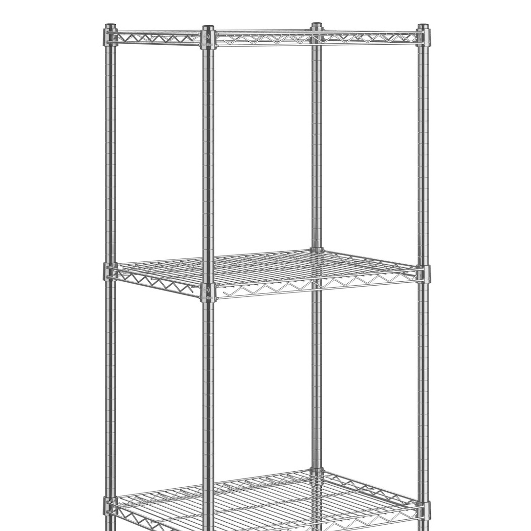 This shelf kit features a chrome wire construction that’s designed to be used in dry environments. Chrome provides excellent durability and is easy to clean and keep sanitary. Set this unit up in your stock room, food pantry, warehouse, garage, or retail area to keep your products organized.